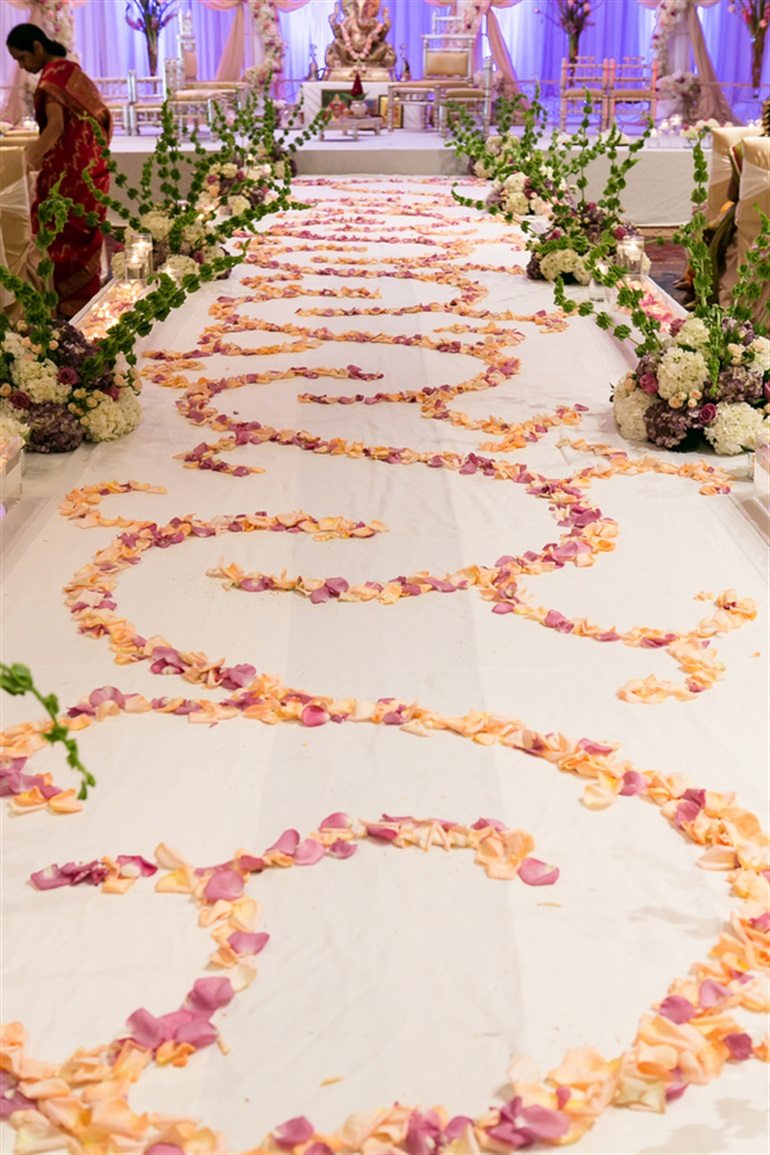 - Flower Petal Aisles. From bright marigolds and classic roses, to delicate orchids, your options are endless when it comes to flower petal aisles. Adorning the aisle with the flower petals of your choice will make your grand entrance the talk of the town.