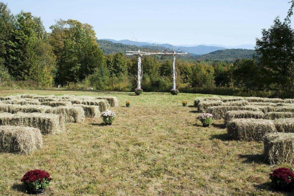 Country style is another easy theme to plan around when going with a backyard wedding. Choose details that coincide with the comfortable, welcoming vibe of this route. From hay bale seating at the ceremony to laying a dance floor down in the spacious barn on the property, there’s a lot of quality accents to go after.