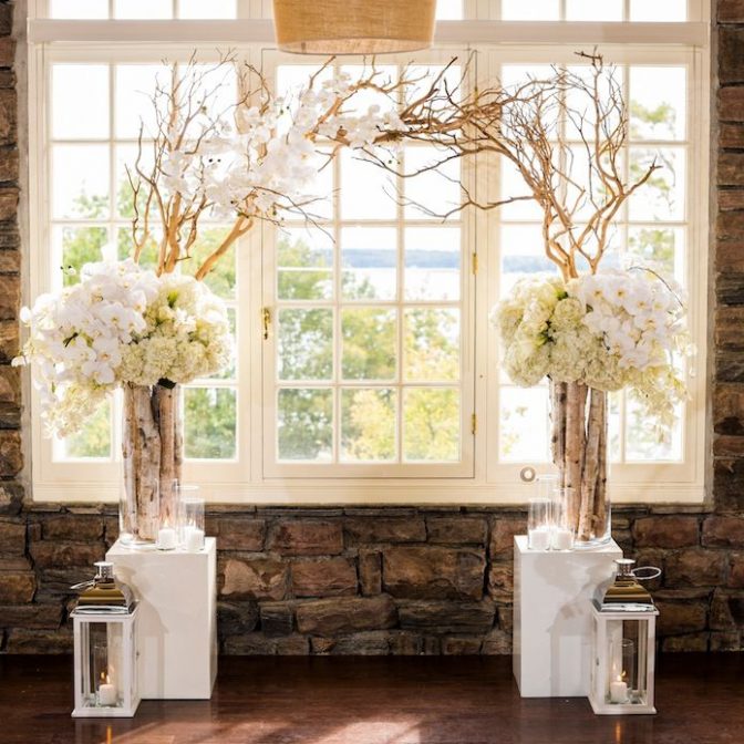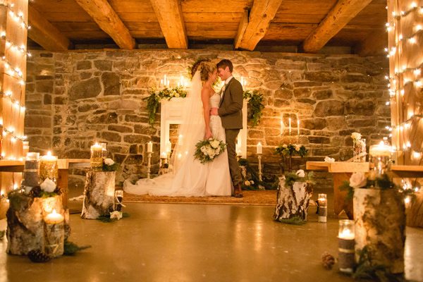 Rustic, country-flavored weddings don’t have to be meant for outdoor weddings only. Instead, think about how cozy a cabin is in the wintertime, with its fireplace and candlelight, you can easily recreate that same warm and welcoming feeling for your wintertime, evening wedding. Think organic, natural details and soft, amber lights. Your guests will feel right at home and it’ll be such a romantic way to celebrate your vows.