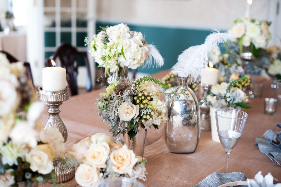 Just like with an all-white wedding, you can go with a similar theme by following the sparkle and shine route. Throughout the holidays, we see a lot of glitter or “frosting,” and we like to think that the first snow of the season has that same hint of sparkle. Powder blues, silvers, golds, blushing pinks, pastel purples and more, go with the tones that are subdued, romantic and you can add a bout of shine to.