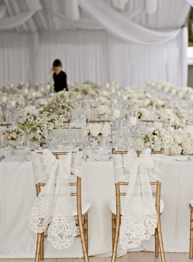 As we said earlier, there’s something quite magical about a winter wedding. The snowflakes in the air, the creams and golden glitter, it’s all quite royal and, well, princess-like. So, what better time to have that quintessentially bridal moment, dressed in a princess gown and feeling like the princess you’ve always dreamed of, than during a cold, dark night in the midst of a “winter wonderland” inspired reception? From blue-hued lighting to icy details, this is a theme you can have a lot of fun and get creative with.