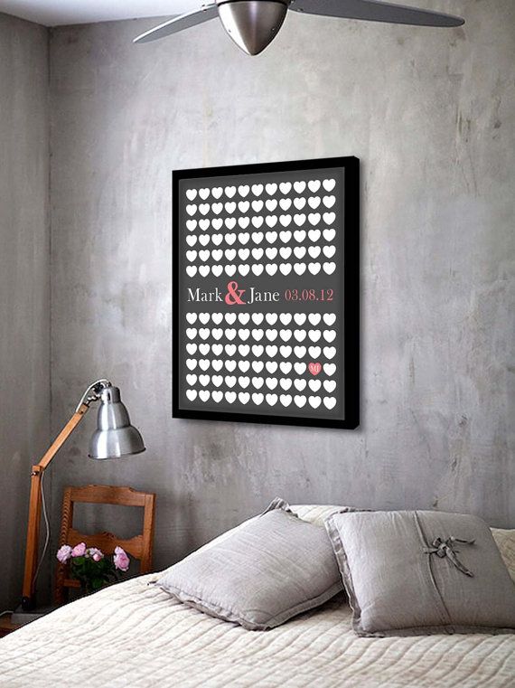 1. Globe 2. Jenga 3. Over-sized letter 4. Polaroids 5. Wedding poster 6. Puzzle 7. Rocks 8. Notes 9. Message in a bottle 10. Etched tray 11. Heart poster 12. Thumbprint