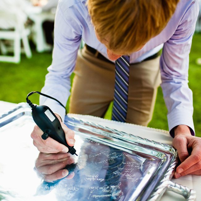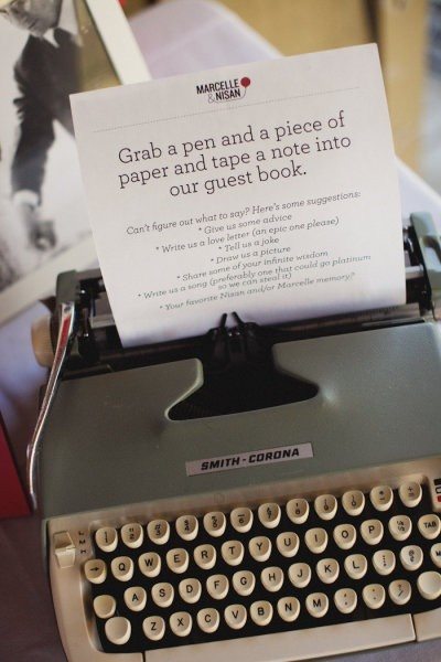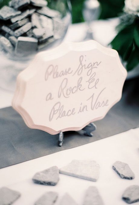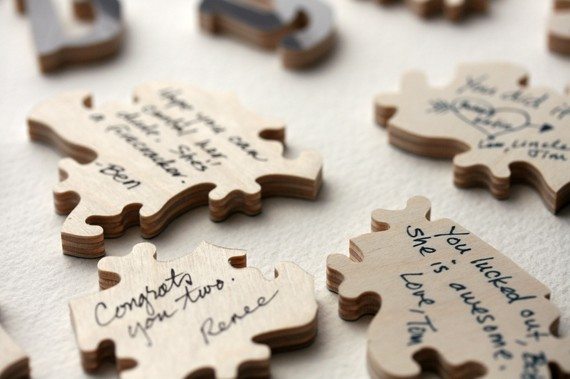One sweet moment you can look forward to after the wedding is cuddling on the couch together and reading your guest book. Nothing makes you feel more celebrated than pages of encouraging notes, congratulations, words of advice, inside jokes, and well wishes. Unless, of course, you’d rather skip pages altogether and go for something a little more unique. Your wedding guest book can be a great way to reflect your personalities, hobbies, or style. Already know that the two of you will be sitting in rocking chairs assembling puzzles on a rainy day sixty years from now? Have your guests sign pieces of a puzzle for you to treasure for years to come. Love to travel? Set out a globe or a world map for guests to sign. Settling in together in a beach house? Tiny messages in a glass bottle will make great decor and great little notes to open and read together on your first anniversary. The decor ideas are endless: posters, smooth rocks, a large letter of your new last name initial, canvases and other art pieces, etc.