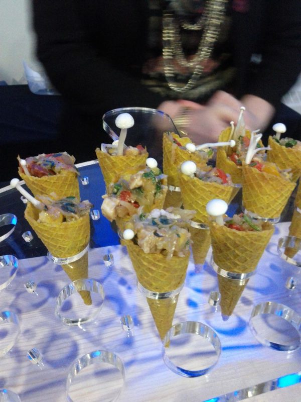 Now lets get to one my favourite parts – the food! We got to sample lots of yummy food, as well as some not so yummy food. I took lots of pictures for you to see. I really feel like presentation is key. You can see which vendors set up a nice display and had a nice presentation of food based on the pictures. My favourite, by far, was a caterer who featured a tuna sashimi dish with apples and pears in a soya ginger sauce. It was so delicious! Other caterers fell flat with food description was very mediocre and didn’t quite match our expectations. My girlfriend sampled a tiramisu that, in her own words, was the best tiramisu she has ever had. Needless to say I’m keeping that caterers card in a safe place. It got me thinking – do I want to go with a venue that has an in house caterer or do I want to book a venue where you have to hire a caterer of your choice? I think the latter is more expensive – both in terms of money and also in terms of worry. I’ll probably be concerned about the caterer and the vendor liaise and their ability to make the wedding day service seamless. I am leaning towards a venue that has in house caterer. Is anyone else having this dilemma? I’d love to hear your your experience working with an outside caterer and how you came to your decision.