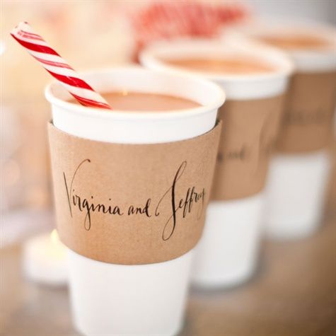Personalize your cup sleeves for the day of event as well, making the drinks of the evening even more memorable.