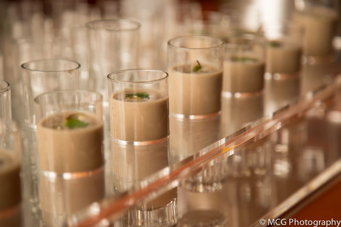 When you think of fall, what food comes to mind? Not a cold sushi roll, shrimp cocktail or chilled melon and prosciutto appetizer. Rather, we think warm soups and stews — creamy, chunky and hearty. Most people think that soups are off limits when it comes to entertaining or event catering because they’re challenging to serve and eat (lowering your head to slurp a warm soup from a rimmed bowl doesn’t exactly facilitate conversation).