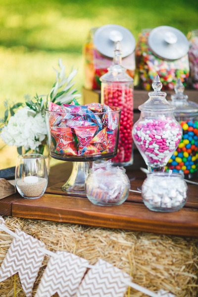 Have a blast picking out your favorite candies and then let your guests munch on them throughout the day. You can even put some grab bags out by the bowls of treats and allow your loved one to take different pieces home as favors and memories of your special day. Again, the kids of the party will love it and the adults won’t be able to get enough of it.