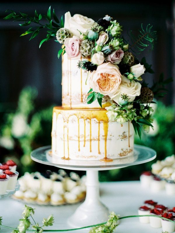 Drip Cakes: Traditional cakes are beautiful and naked, bare cakes were a big trend in recent years. Now, drip cakes are leading the pack. They look delicious but they’re also a piece of unique art at the reception!