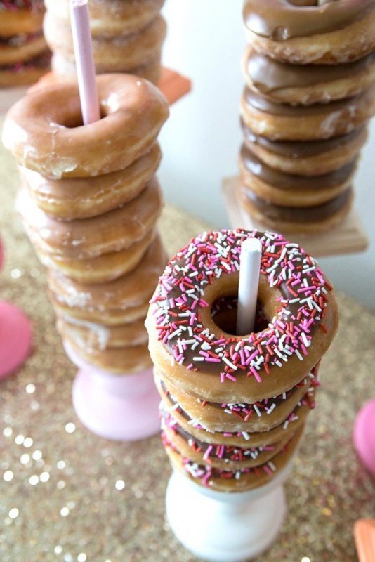 Donuts: It’s the “it” food of the moment. Add them to the dessert table or make an entire “donut” bar for your guests to enjoy.