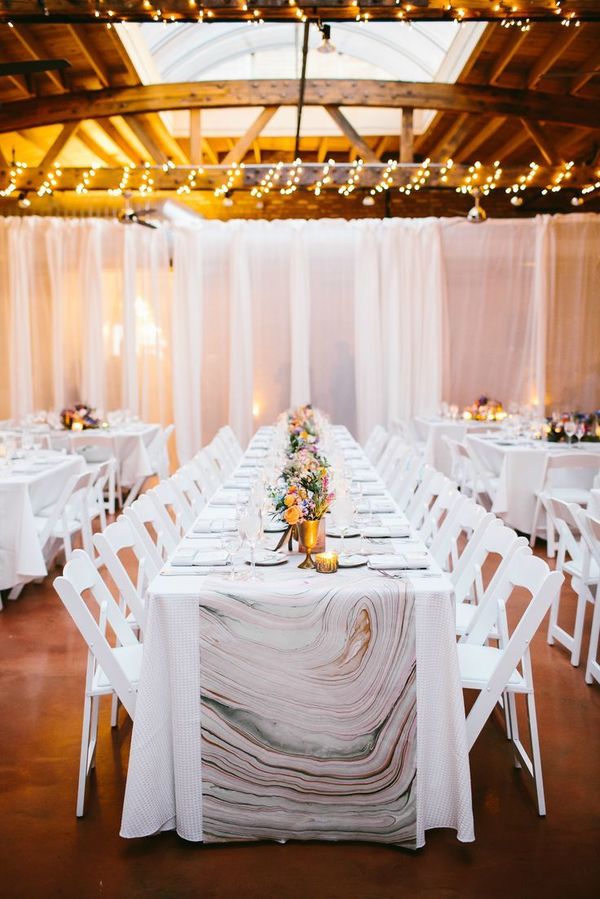 Marble is taking the fashion and interior design worlds by storm, so it was only natural that it spilled over into weddings as well. From cakes to table runners, this textural, chic print is climbing the charts in popularity.